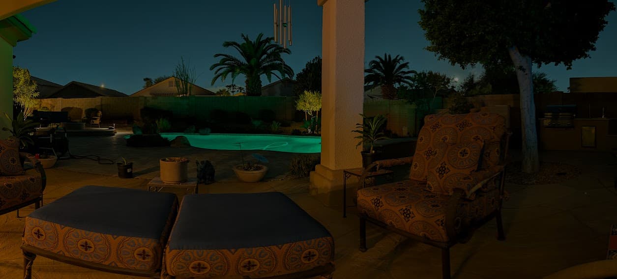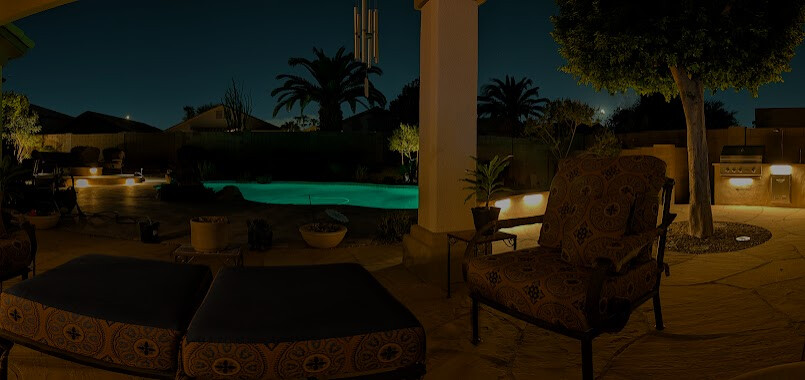 As bedtime approaches I now turn off the a good portion of the lighting, and dim the zone close to the house to 10%. It’s hard to see the dimming effect as my camera is trying to compensate for the darkness.
